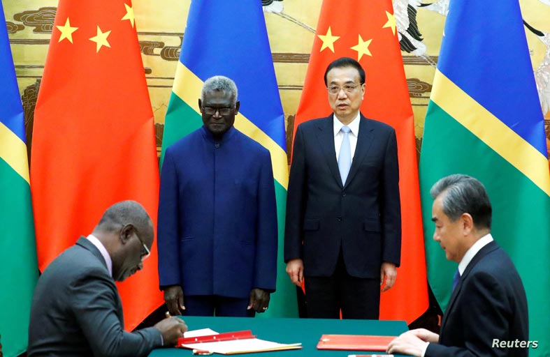 أعلن رئيس وزراء جزر سليمان ماناسيه سوغافاري أن حكومته وقّعت اتفاقا أمنيا مثيرا للجدل مع الصين بـ "تبصّر" لكنه رفض الكشف عن موعد نشره. ولقي هذا الاتفاق الذي أعلنت عنه الصين الثلاثاء انتقادا شديدا من حليفي الأرخبيل الولايات المتحدة وأستراليا، اللذين يتخوّفان من الطموحات العسكرية لبكين في منطقة المحيط الهادئ.