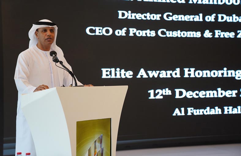 من جانبه أثنى سعادة أحمد محبوب مصبح على جهود كافة القطاعات والإدارات والمراكز الجمركية ودورها الحيوي في فوز الدائرة بجائزة النخبة من خلال تطوير الأداء والعمل بروح الفريق الواحد للارتقاء بمستوى الخدمات والتسهيلات التجارية والجمركية التي تقدمها الدائرة للمتعاملين دعما لزيادة التجارة الخارجية ونمو الاقتصاد الوطني مع المحافظة على أمن وسلامة المجتمع.