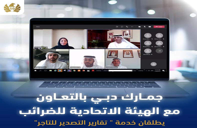 وتم إطلاق خدمة تقارير التصدير للتاجر  في لقاء افتراضي حضرهُ سعادة أحمد محبوب مصبح المدير العام لجمارك دبي وسعادة خالد علي البستاني المدير العام للهيئة الاتحادية للضرائب والمدراء التنفيذيون ومدراء الإدارات والمراكز الجمركية من الجانبين.