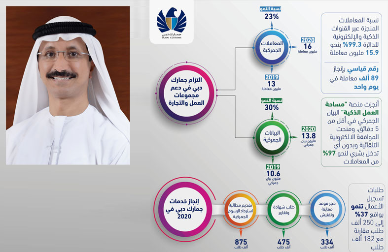 جمارك دبي تنجز 16 مليون معاملة جمركية خلال 2020 بنمو 23 % مقارنة مع 2019