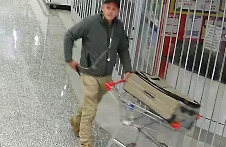 وأظهرت لقطات كاميرات المراقبة الرجل وهو يدخل المركز بهدوء، ويدفع عربة تسوق ويضع سماعات الرأس وكأنه يستمع إلى الموسيقى، بينما كان يحمل حقيبة سفر استخدمها لإخفاء المسروقات.