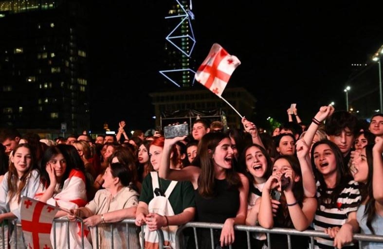 تجمع آلاف الجورجيين في تبليسي لحضور حفل موسيقي من أجل جمع أموال للمتظاهرين الذين أوقِفوا خلال أسابيع من الاحتجاجات ضد قانون "التأثير الأجنبي" المثير للجدل.