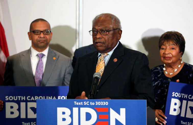 في 23 فبراير، خلال برنامج “لقاء مع الصحافة” التابع لـ “ان بي سي”، أنهى جيم كليبرن، وهو أعلى مسؤول أسود في الكونغرس، و”سوط” الأغلبية في مجلس النواب، النائب عن ساوث كارولينا، أنهى في جملتين حالة التردد التي كان يمكن أن تجتاح الناخبين الأمريكيين السود عند اختيار مرشحهم للانتخابات التمهيدية الديمقراطية.
