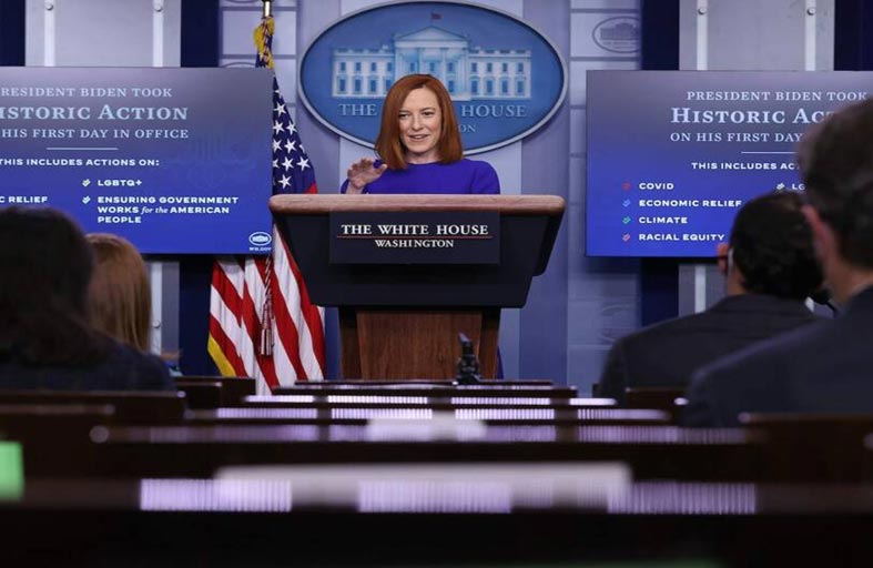 نكتة عن “القوة الفضائية” العزيزة جدًا على دونالد ترامب، أو سؤال حول لون الطائرة الرئاسية بذكاء... لقد تغير الأسلوب كثيرًا في غرفة الصحافة بالبيت الأبيض طيلة يزيد عن أسبوع الآن. الوجه الجديد لرئاسة بايدن تدعى جين بساكي... وفي غضون ثمانية أيام، أحدثت ثورة في النقاط الصحفية للرئاسة الأمريكية.
