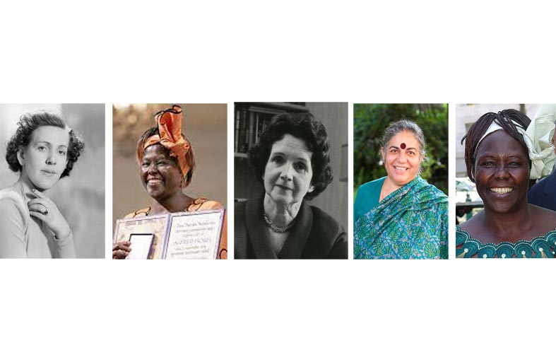 تعتبر جائزة نوبل للبيئة  لقد مُنحت جائزة جولدمان المرموقة  ، التي تُعتبر جائزة نوبل للبيئة ،لـ 95 امرأة من أصل 213  فائز منذ عام 1990 مقارنة بـ 6٪ من النساء الحاصلات على جائزة نوبل  . وهذا ،” على الرغم من أن النشاط هو تاريخياً أكثر ذكورية” ، كما تتذكر عالمة اجتماع العمل والجندر جينيفياف بروفوست.  .باستثناء أنه على الرغم من وجودهن في مدرجات الأمم المتحدة ، لا تزال المرأة ممثلة تمثيلا ناقصا إلى حد كبير في هيئات صنع القرار” ..