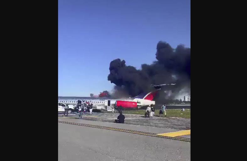 وأظهرت لقطات النيران تشتعل في الطائرة التي سارت فترة من الزمن بلا عجلات، وهرعت فرق الإنقاذ سريعا إلى الطائرة من أجل إخلاء الركاب وإخماد النيران التي اشتعلت.