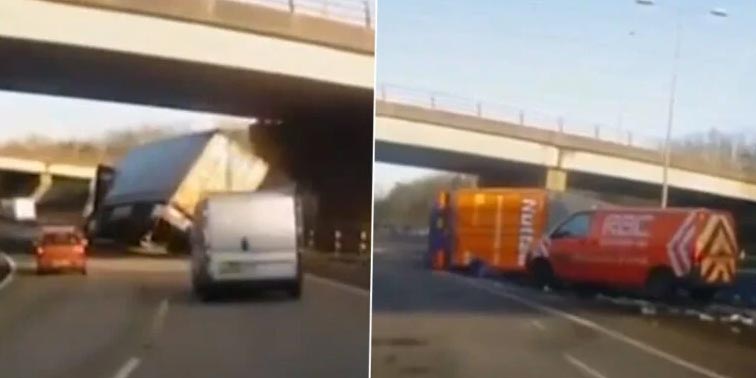 وقالت الصحيفة إن سائقا كان في طريقه من رومفورد ، شرق لندن، إلى بيشوبس ستورتوفرد، شمال شرقي العاصمة البريطانية صوّر الحادثة بالصدفة. وذكر السائق، الذي فضّل أن يبقى اسمه مجهولا، أن انقلاب الشاحنة أحدث اضطرابا لدى السائقين المحيطين بها. وأضاف أن الحركة في الطريق السريع كانت خفيفة، ولم يكن هناك شيء غير مألوف حتى وقوع الحادث بعد ظهيرة السبت. ولفت إلى أنه عند دخول المنعطف المؤدي إلى طريق "أم 11" لاحظ أن المقطورة بدأت في الانحناء ثم السقوط. وتبين أن الشاحنة قطعت الحاجز الآمن الذي يفصلها عن الجانب الأيمن، قبل أن تنزلق هناك. وأصيب السائق بجروح طفيفة مثل الكدمات، لكنها وصفت بغير المهددة للحياة.