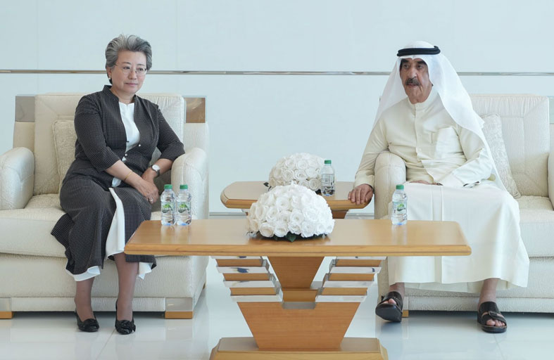 حاكم أم القيوين يتقبل تعازي القنصل الصيني في وفاة الشيخة حصة بنت حميد الشامسي