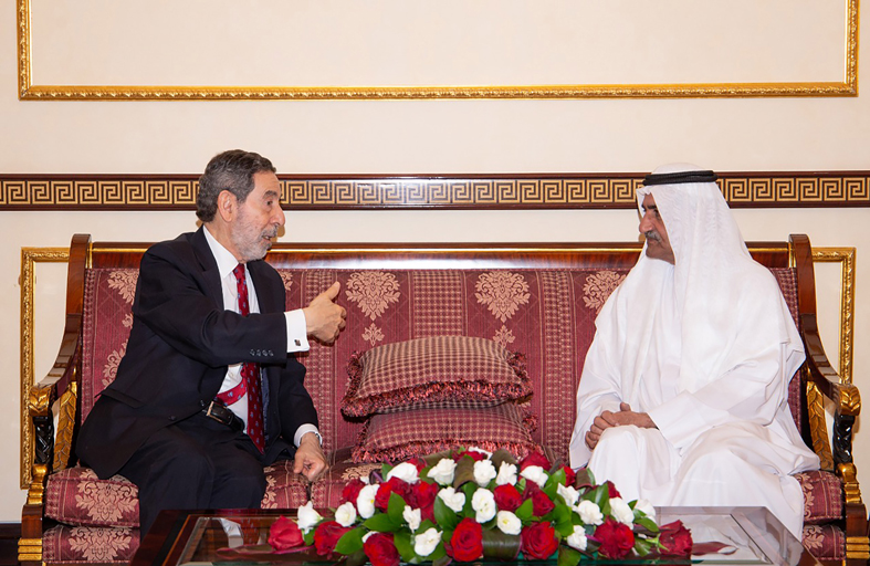 استقبل صاحب السمو الشيخ حمد بن محمد الشرقي عضو المجلس الأعلى حاكم الفجيرة في قصر الرميلة، سعادة السفير اوزمار شحفة رئيس الغرفة التجارية العربية البرازيلية والوفد المرافق له..