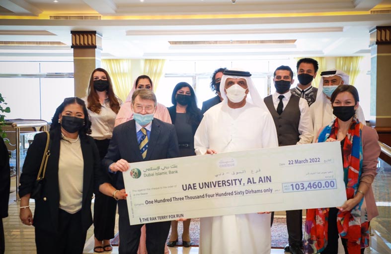 حاكم رأس الخيمة يستقبل اللجنة المنظمة لسباق تيري فوكس ويسلم ريعه لـ «جامعة الإمارات»