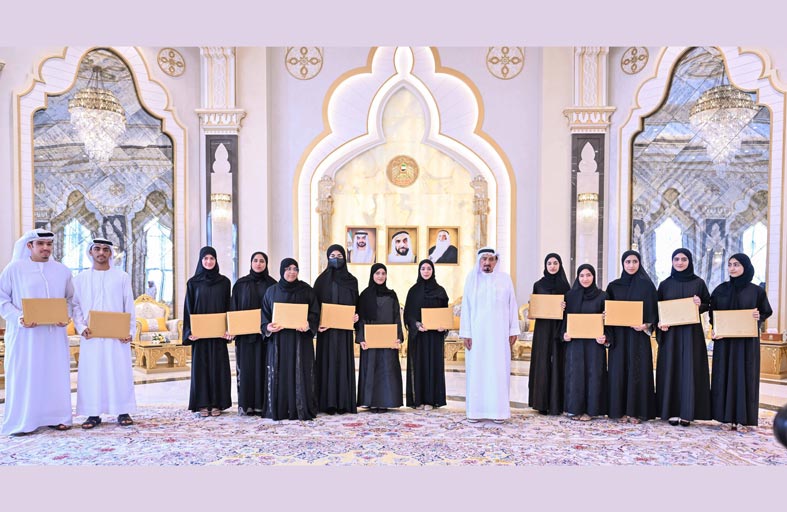 حاكم عجمان وولي عهده يستقبلان أوائل الثانوية العامة بالإمارة