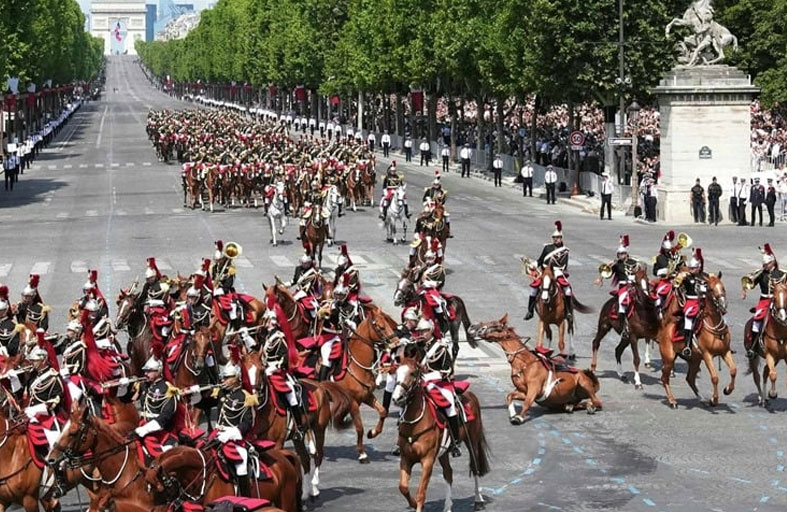 شهد العرض العسكري السنوي بمناسبة يوم الباستيل في العاصمة الفرنسية باريس حادثة غير متوقعة أثارت جدلاً عالمياً، حيث لوحظ هروب أحد الخيول من التشكيلة الاستعراضية من دون فارسه، كما تعثر حصان آخر وسقط أرضاً، مثيراً منظراً عشوائياً ومحرجاً للقوات الفرنسية، في حضور الرئيس الفرنسي إيمانويل ماكرون وكبار المسؤولين.  وتسبب المشهد الفوضوي سخرية وانتقادات واسعة على مواقع التواصل الاجتماعي من قبل المغردين، لا سيما وأن هذا اليوم يعد من أهم الأعياد الوطنية للبلاد. واجتاحت التعليقات الساخرة منصات التواصل، حيث كتب كثيرون أن الحصان "قدّم استقالته من العرض" احتجاجاً على الضغط أو الإرهاق. وانتشرت عبارة "الحصان استقال!" بشكل ساخر واسع النطاق بين المغردين الفرنسيين. في المقابل، اعتبر آخرون أن ما حدث يعكس حجم الجهد والانضباط الذي تتطلبه العروض العسكرية، داعين إلى مزيد من العناية بالخيول والعناصر المشاركة في ظروف الطقس الحار.  الواقعة جاءت رغم الاستعدادات الأمنية المشددة، حيث أعلن مدير شرطة باريس، لوران نونيز، عن نشر نحو 12 ألف عنصر أمني في العاصمة وضواحيها تحسباً لأي أعمال شغب أو اضطرابات.