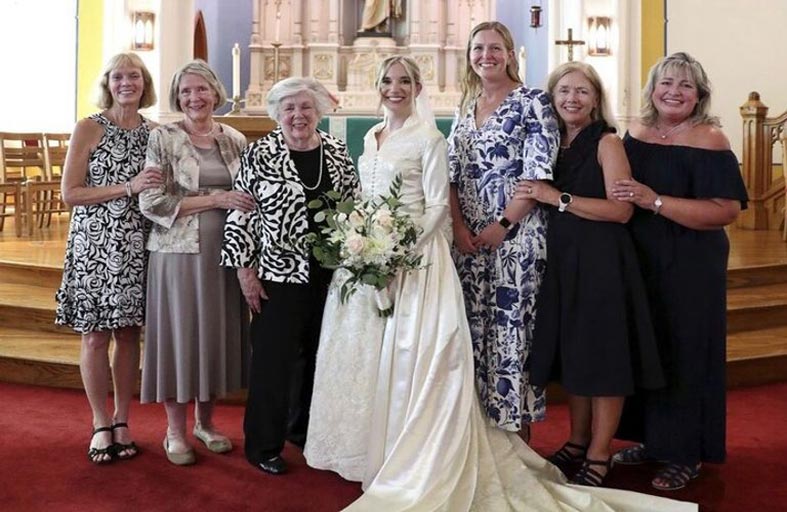 والآن، بعد 72 عاماً من زواج "أديل" في كنيسة "إبينيزر" اللوثرية، ارتدت حفيدتها "سيرينا ستونبرج ليباري" الفستان نفسه في كنيسة شيكاغو أيضاً لحضور حفل زفافها في 5 أغسطس-آب.