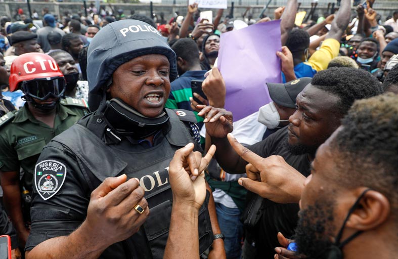 وكانت وحشية الشرطة في نيجيريا التي يبلغ عدد سكانها 200 مليون نسمة، أكثر المواضيع تداولاً بعد ظهر الجمعة على مواقع التواصل الاجتماعي. ونزل مئات النيجيريين لا سيما الشباب، خلال الأسبوع يومياً إلى شوارع المدن الكبرى في جنوب البلاد وكذلك في العاصمة أبوجا، حيث جرى تفريقهم باستخدام الغاز المسيل للدموع وخراطيم المياه.