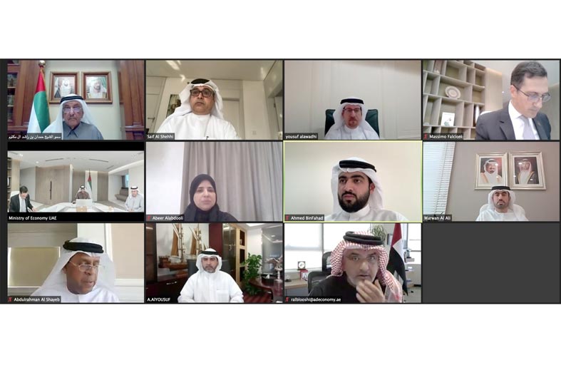 ترأس سمو الشيخ حمدان بن راشد آل مكتوم نائب حاكم دبي وزير المالية رئيس مجلس إدارة شركة الاتحاد لائتمان الصادرات - شركة حماية الائتمان التابعة للحكومة الاتحادية - اجتماع مجلس إدارة الشركة الأول لعام 2021 عبر تقنية الاتصال المرئي.