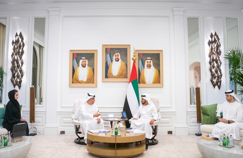 استقبل سمو الشيخ حمدان بن زايد آل نهيان ممثل الحاكم في منطقة الظفرة في قصر النخيل سعادة الدكتور محمد راشد الهاملي مدير عام هيئة أبوظبي للإسكان .