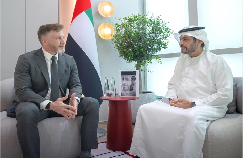 استقبل معالي الشيخ حمدان بن مبارك آل نهيان رئيس اتحاد الإمارات لكرة القدم أمس في العاصمة ,أبوظبي, أليخاندرو دومينغيز رئيس اتحاد أمريكا الجنوبية لكرة القدم الذي يزور البلاد حالياً.