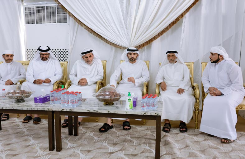 حمدان بن محمد يقدم واجب العزاء في وفاة الرقيب عمر الكتبي