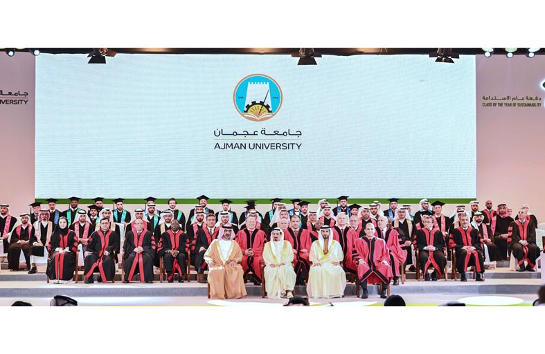 شهد صاحب السمو الشيخ حميد بن راشد النعيمي عضو المجلس الأعلى حاكم عجمان وسمو الشيخ عمار بن حميد النعيمي ولي عهد عجمان، رئيس المجلس التنفيذي، رئيس مجلس أمناء جامعة عجمان حفل تخريج الفوج الأول من "دفعة عام الاستدامة" من خريجي الجامعة الذين تجاوز عددهم 200 خريج من مختلف الكليات والذي أقيم امس بقاعة الشيخ زايد للمؤتمرات والمعارض في الحرم الجامعي وسط أجواء عمّتها السعادة والفخر بفرحة النجاح والتخرج.