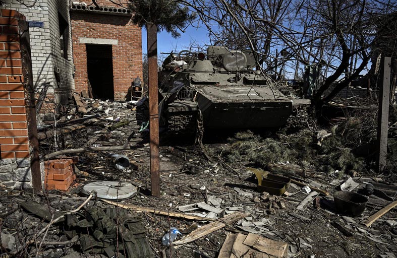 ولأوكرانيا حسابات مختلفة حسب براندز. ويعتقد قادتها أن الغزاة الروس مفرطون في التوسع وضعفاء. تشن القوات الأوكرانية حملات لكسر الطوق الذي تفرضه الوحدات الروسية على كييف.