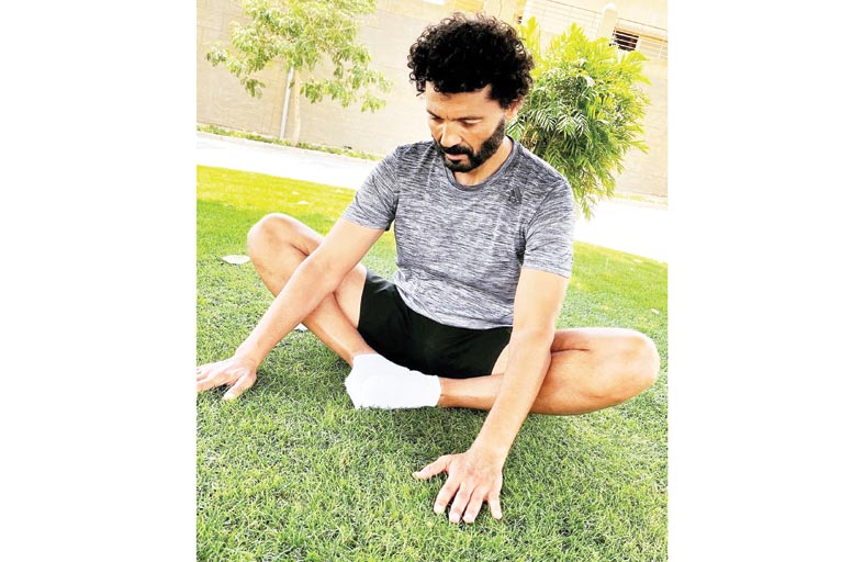 خالد النبوي يستمد طاقته من الأرض في التمارين الصباحية