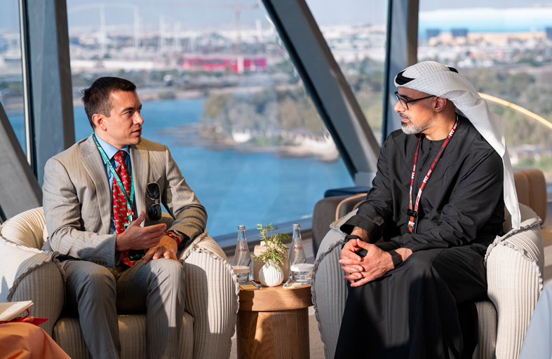 خالد بن محمد بن زايد يلتقي رئيس الإكوادور على هامش فعاليات سباق جائزة الاتحاد للطيران الكبرى للفورمولا 1