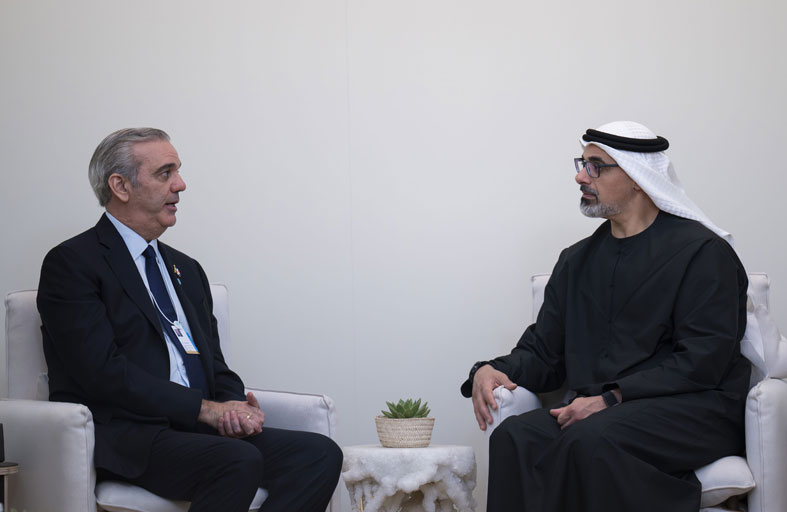 خالد بن محمد بن زايد يلتقي رئيس جمهورية الدومينيكان على هامش أعمال القمة العالمية للحكومات