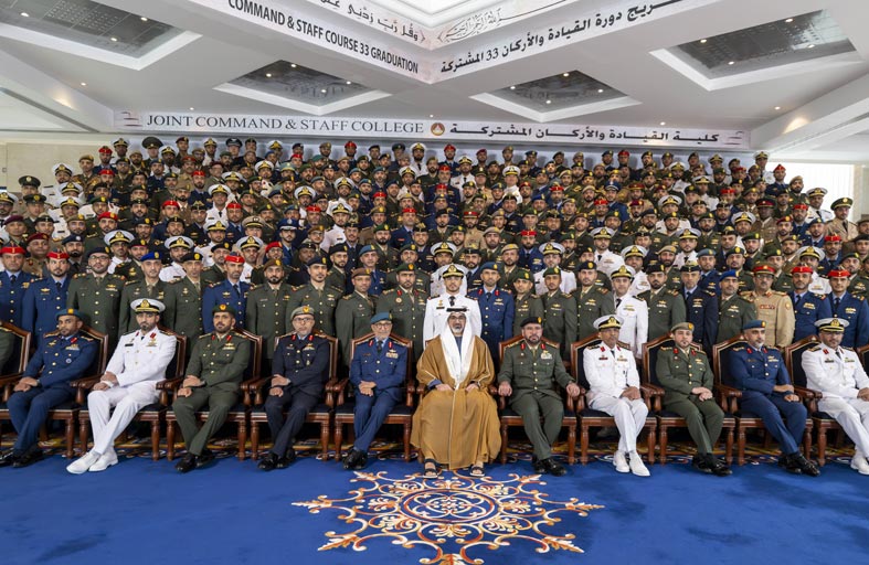 وأشاد سموّه بدور كلية القيادة والأركان المشتركة في تأهيل وإعداد الضباط لتولي الوظائف القيادية في القوات المسلحة، وفقاً لأحدث المناهج والعلوم العسكرية، والتركيز على البحث والتحليل الاستراتيجي، للإسهام في بناء الرؤية المستقبلية لدور القدرات العسكرية في حفظ السلام وتقديم الدعم اللازم للمناطق المنكوبة في أوقات الأزمات وغيرها من العمليات الإنسانية التي تتطلب تنسيقاً وتخطيطاً مشتركاً بين جميع الوحدات العسكرية باختلاف تشكيلاتها، وتخصصاتها الميدانية واللوجستية والإدارية.