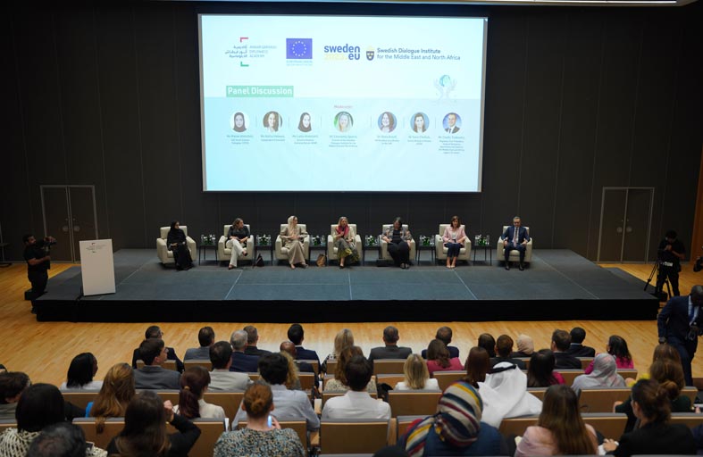 جاء ذلك خلال الجلسة النقاشية التي نظمتها أكاديمية أنور قرقاش الدبلوماسية وبعثة الاتحاد الأوروبي لدى الدولة وسفارة السويد لدى الدولة ومعهد الحوار السويدي لمنطقة الشرق الأوسط وشمال أفريقيا، حول دور القيادات النسائية في دفع عجلة العمل المناخي وتسريع التحول الأخضر، بالتزامن مع استعدادات دولة الإمارات لاستضافة الدورة الثامنة والعشرين من مؤتمر الأطراف(COP28).
