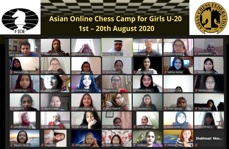 اختتم بنجاح كبير أول معسكر تدريبي في رياضة الشطرنج عبر الإنترنت للفتيات أقل من 20 سنة من كافة دول قارة آسيا وذلك بالتعاون بين الاتحاد الآسيوي للشطرنج ولجنة الشطرنج النسائي وصندوق التنمية بالاتحاد الدولي للشطرنج