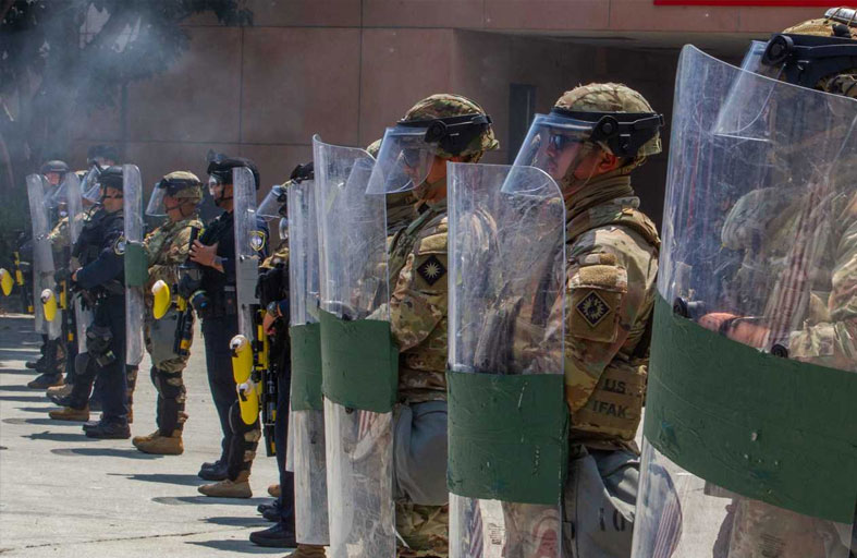وكان الرئيس الجمهوري أمر بإرسال 700 جندي من مشاة البحرية و4000 جندي من الحرس الوطني إلى لوس انجليس في يونيو حزيران، وذلك على عكس رغبة حاكم كاليفورنيا الديمقراطي جافين نيوسوم.