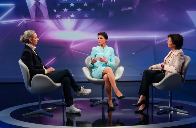 تبادلت زعيمتان من اليمين المتطرف في ألمانيا، وهما آليسا فايدل من حزب البديل من أجل ألمانيا، وزعيمة حزب اليسار «تحالف سارة فاجنكنشت»، الاتهامات خلال ظهور لهما على قناة «إيه آر دي».