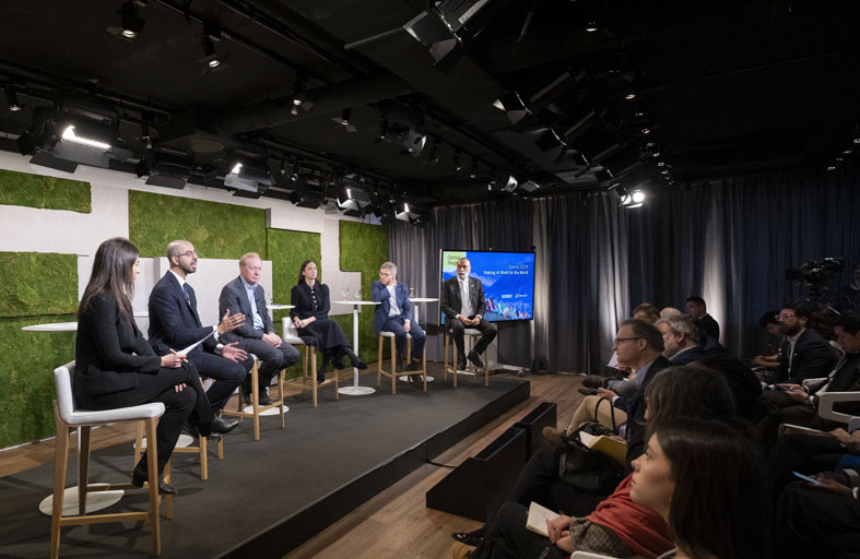 بحث معالي عمر بن سلطان العلماء وزير دولة للذكاء الاصطناعي والاقتصاد الرقمي وتطبيقات العمل عن بعد، مع قادة عالميين في قطاع التكنولوجيا، إمكانات الذكاء الاصطناعي، وسبل توظيف حلوله المتقدمة في خدمة تطور المجتمعات حول العالم، وصناعة مستقبل أفضل للأجيال القادمة، وذلك في جلسة "توظيف تقنيات الذكاء الاصطناعي لخدمة العالم"، ضمن أعمال الدورة الـ 54 للمنتدى الاقتصادي العالمي التي تعقد في مدينة دافوس السويسرية.تحدث في الجلسة، معالي عمر سلطان العلماء وبراد سميث رئيس شركة "مايكروسوفت"، وإيان بريمر المؤسس والرئيس لمجموعة أوراسيا، وإيفا مايديل عضو البرلمان الأوروبي ورئيسة لجنة الاتحاد الأوروبي الخاصة المعنية بالذكاء الاصطناعي، وأمانديب سينغ جيل المبعوث الفني للأمم المتحدة، وأدارتها بيانا جولودريجا الإعلامية المتخصصة بالشؤون العالمية في شبكة "سي إن إن".