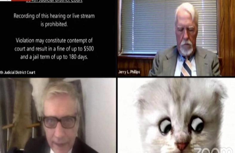 فقد ظهر المحام أمام قاض في قضية محكمة عن بعد على الشاشة كـ"قطة كارتونية"، بعد أن فشل في إدراك أن ابنه شغل "فلتر القطط" على كاميرا التطبيق، الذي يظهر قطة بدلا من الشخص.