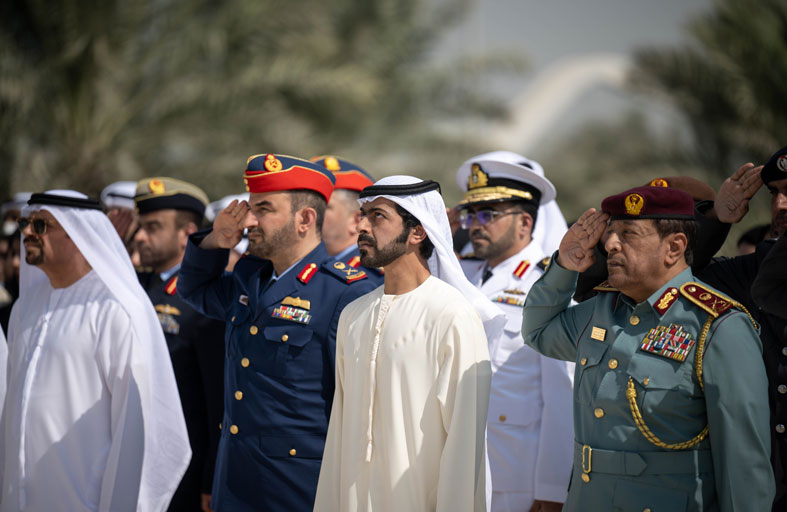 خليفة بن طحنون يرفع علم الدولة في واحة الكرامة