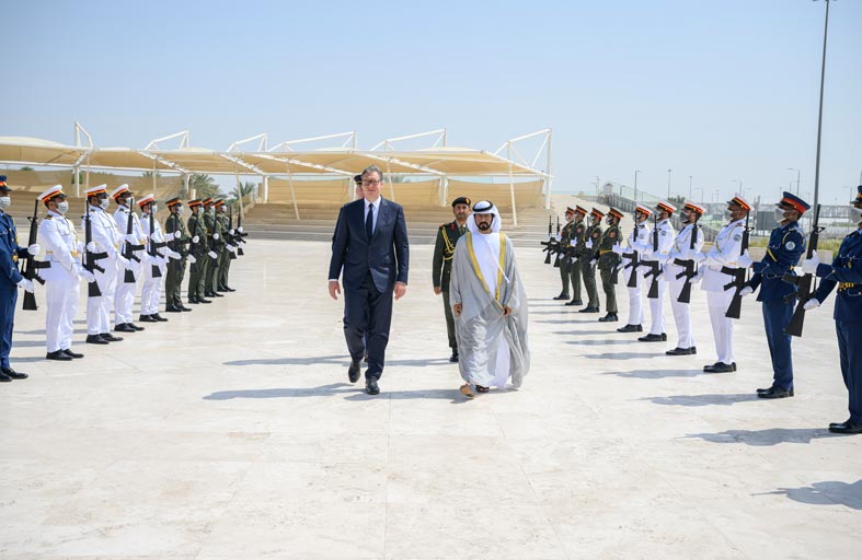 خليفة بن طحنون يستقبل رئيس جمهورية صربيا في واحة الكرامة