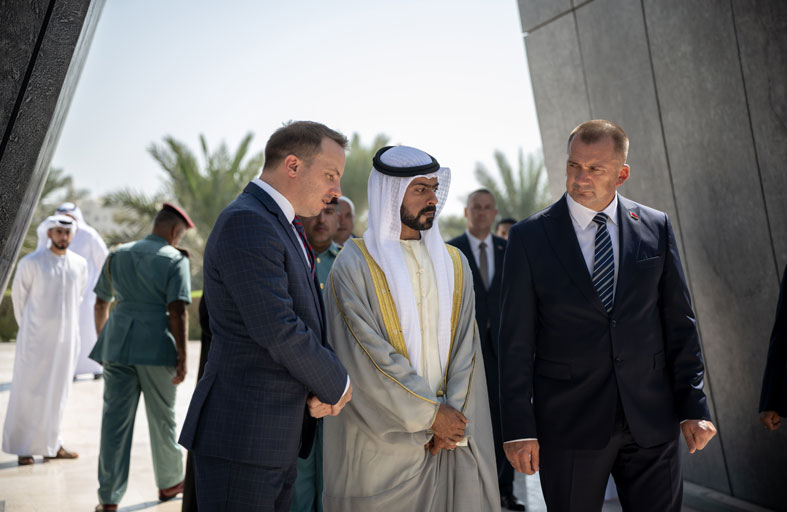 خليفة بن طحنون يستقبل وزير الشؤون الداخلية البيلاروسي في واحة الكرامة