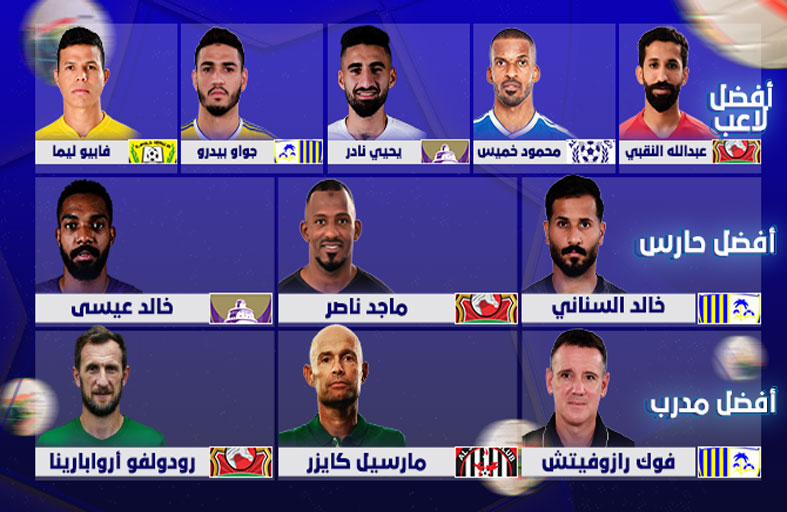 أما العميد محمود خميس فقد سجل هدفين في شباك حتا والفجيرة أهديا النصر ست نقاط كاملة من المباراتين. وبخصوص يحيى نادر فقد قدم تمريرة حاسمة للابا كودجو حسمت الكلاسيكو للزعيم أمام الوحدة، بينما استمر أداء عبد الله النقبي المميز مع الفرسان وقدم تمريرتين حاسمتين خلال ديسمبر ليستحق التواجد في قائمة المرشحين للجائزة.
