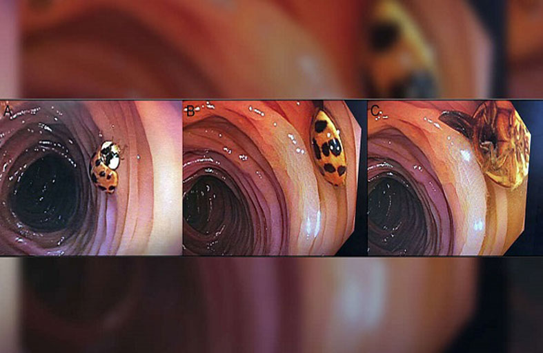 صُدم الأطباء الذين أجروا تنظيراً لقولون مريض يبلغ من العمر 59 عامًا لاكتشاف خنفساء صغيرة تزحف داخل أمعائه.وشعر الأطباء بالحيرة أثناء عملية تنظير روتينية للقولون لأحد المرضى في عام 2019 بحثاً عن ندبات أو قروح أو أورام، لكن ما عثروا عليه كان غريباً للغاية، حيث لاحظوا وجود خنفساء حية تزحف داخل أمعاء المريض. وتساءل الأطباء كيف دخلت الخنفساء إلى أمعاء الرجل في المقام الأول؟ لكنهم يشتبهون في أنها قد تكون دخلت عبر فمه أثناء نومه. وفيما يتعلق بكيفية تمكنها من البقاء على قيد الحياة في جهازه الهضمي، يعتقدون أن الأمر قد يكون له علاقة بتحضيره لتنظير القولون، حيث يجب أن يكون القولون فارغًا ونظيفًا قدر الإمكان، مما يتضمن الامتناع عن تناول الطعام. وتم إعطاء المريض كوكتيلًا يحتوي على البولي إيثيلين جلايكول، وهو ملين تناضحي يستخدم لعلاج الإمساك، والذي يعتقد الأطباء أنه قد سرع من رحلة الخنفساء عبر الجهاز الهضمي للرجل، وضمن مرورها بأمان على طول الطريق إلى القولون.