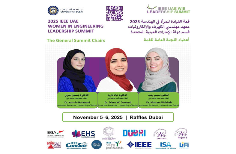 تستضيف دبي يومي 5 إلى 6 نوفمبر الحالي قمة القيادة للمرأة في الهندسة 2025 التابعة لمعهد مهندسي الكهرباء والإلكترونيات “IEEE” – فرع دولة الإمارات بمشاركة أكثر من 200 من الأعضاء والقيادات النسائية يمثلن أكثر من 10 دول.