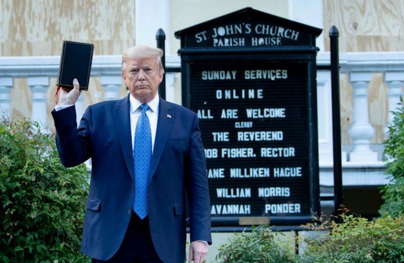 وحسب العديد من المسؤولين، كان ترامب نفسه صاحب فكرة هذه الكوريغرافيا الصغيرة. لقد راهن الرئيس على أن رؤيته بشيء مقدس أمام كنيسة سيكسبه أرضية، وشرعية أخلاقية معينة في هذه الفترة الفوضوية، بينما تتزايد أعمال الشغب ضد عنف الشرطة في البلاد. لم يقرأ الرئيس فقرة من الكتاب المقدس ولم يدخل الكنيسة، كما أنه لم يوضح سبب تواجده وعدم وجود زعيم ديني الى جانبه.