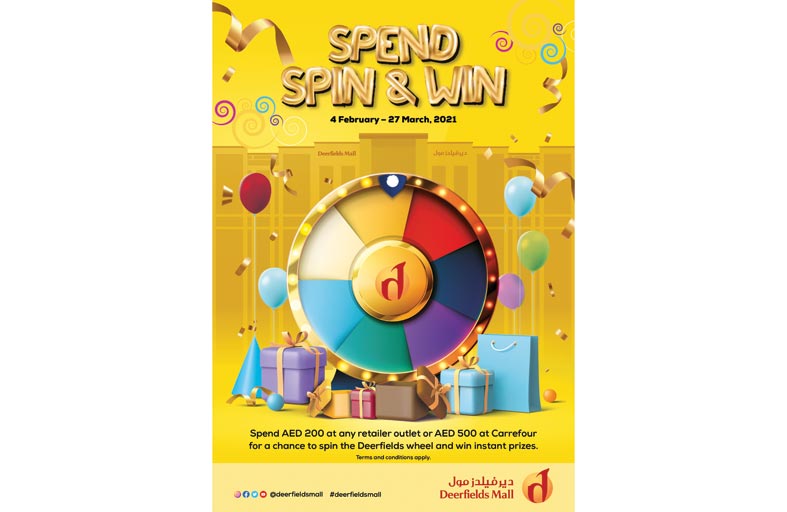يدعو مركز ديرفيلدز مول التجاري في العاصمة أبوظبي زواره للاستمتاع بمهرجان التسوق الذي سيستمر على مدار سبعة أسابيع، للحصول على فرصة ربح العديد من الجوائز الفورية القيمة.  حيث سيتمكن زوار ديرفيلدز مول في الفترة ما بين 4 فبراير و27 مارس من لف دولاب حظ ديرفيلدز  وربح العديد من الجوائز الفورية القيمة بمجرد التسوق بقيمة 200 درهم إماراتي لدى أي من محال التجزئة أو بقيمة 500 درهم إماراتي لدى كارفور.  كما يقدم مركز ديرفيلدز مول التجاري طيف واسع من العروض القيمة والأنشطة الممتعة التي ستنال إعجاب عشاق التسوق مهما تعددت أذواقهم واهتماماتهم.