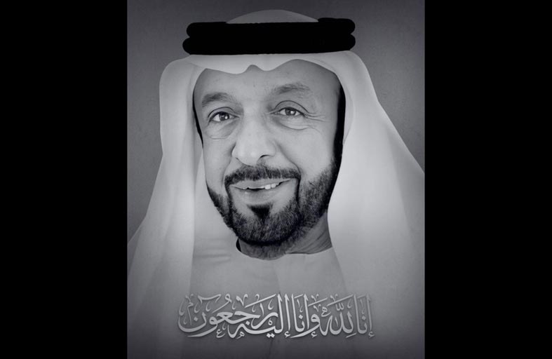 ينعي ديوان حاكم عجمان المغفور له قائد الوطن وراعي مسيرته صاحب السمو الشيخ خليفة بن زايد آل نهيان رئيس الدولة الذي انتقل إلى جوار ربه أمس. و أعلن الديوان الحداد الرسمي وتنكيس الأعلام على المغفور له صاحب السمو الشيخ خليفة بن زايد آل نهيان رئيس الدولة " رحمه الله " مدة 40 يوماً اعتباراً من أمس و تعطيل العمل في الدوائر والمؤسسات الاتحادية والمحلية والقطاع الخاص 3 أيام اعتبارا من اليوم السبت على أن يستأنف الدوام الرسمي يوم الثلاثاء المقبل".