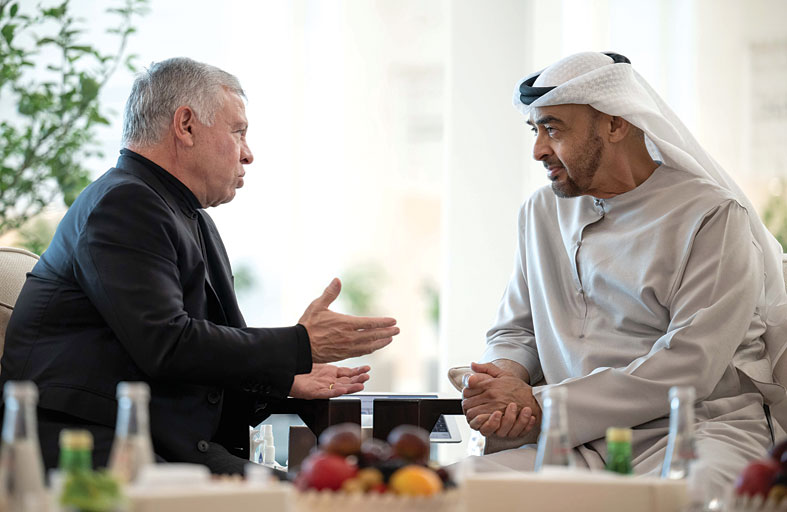 كما استعرض سموه وجلالة الملك عبد الله الثاني ــ خلال اللقاء الذي جرى في قصر الشاطئ بأبوظبي ــ فرص تنمية مسارات التعاون المتعددة ومجالاته خاصة التنموية والاقتصادية بما يخدم البلدين والشعبين الشقيقين.