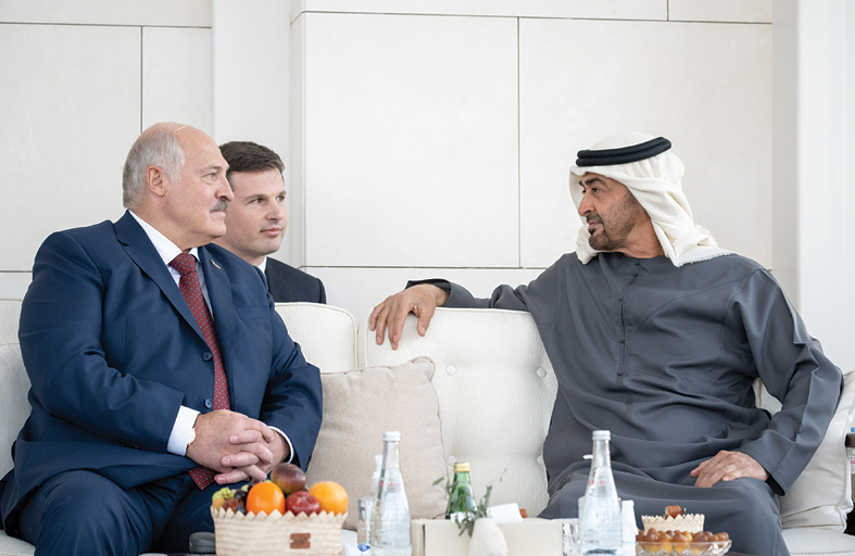 من جانبه عبر فخامة ألكسندر لوكاشينكو رئيس جمهورية بيلاروسيا الصديقة عن شكره لصاحب السمو الشيخ محمد بن زايد آل نهيان لحسن الاستقبال، مؤكداً اهتمام بلاده بتعزيز علاقاتها مع دولة الإمارات.