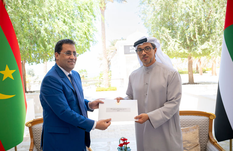 رئيس الدولة يتلقى رسالة خطية من الرئيس الموريتاني تسلمها منصور بن زايد