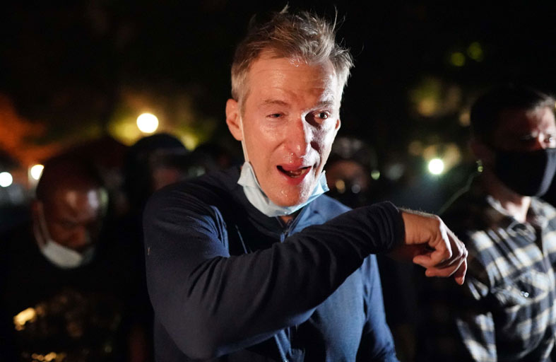 وأظهرت تسجيلات مصورة لوكالة فرانس برس رئيس البلدية الديموقراطي تيد ويلر واضعا نظارات واقية وقناعا أثناء إبعاده عن الحشود وسط سحب الغاز وانفجار المفرقعات النارية على مسافة قريبة.