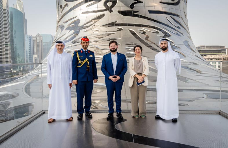 استضاف "متحف المستقبل" فخامة غابرييل بوريك فونت رئيس جمهورية تشيلي برفقة وفد رفيع المستوى خلال زيارته الرسمية لدولة الإمارات. واطلع رئيس جمهورية تشيلي خلال جولته في المتحف على التصميم المميز للمبنى وأبرز معالمه وأقسامه إلى جانب التجارب التفاعلية والابتكارات التي يعرضها للزوار من مختلف أنحاء العالم. كما تعرف فخامته على أبرز المبادرات والمشاريع المستقبلية التي يحتضنها المتحف للمساهمة في صناعة مستقبل أفضل للبشرية. وتأتي هذه الزيارة على هامش الزيارة الرسمية الأولى من نوعها لرئيس جمهورية تشيلي إلى دولة الإمارات العربية المتحدة منذ إقامة العلاقات الدبلوماسية بين البلدين عام 1978.