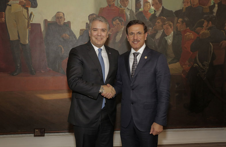 إلى ذلك، أكد فخامته أهمية تعزيز تبادل الزيارات لإطلاع مجتمعي الأعمال من الجانبين على الفرص الاستثمارية والتجارية بما يخدم جهود التعاون المشترك بين البلدين الصديقين، مشيراً إلى حرص بلاده على تحقيق مشاركة متميزة في إكسبو دبي 2020 الذي سيشكل منصة فريدة لتسويق وترويج المنتجات الكولومبية، كما دعا فخامته معالي سلطان المنصوري وزير الاقتصاد إلى زيارة معرض السياحة الدولي في بوغوتا 2021 وأن تكون دولة الإمارات ضيف شرف على الحدث المهم.