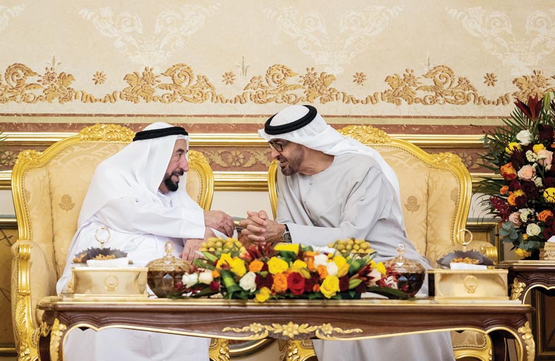 واستذكر سموهما دور المؤسسين ومن تسلم مسؤولية المسيرة المباركة بعدهم ..مشيرين إلى جهود المغفور له الشيخ خليفة بن زايد آل نهيان "رحمه الله" في مواصلة ترسيخ أركان نهضة الوطن وإنجازاته.